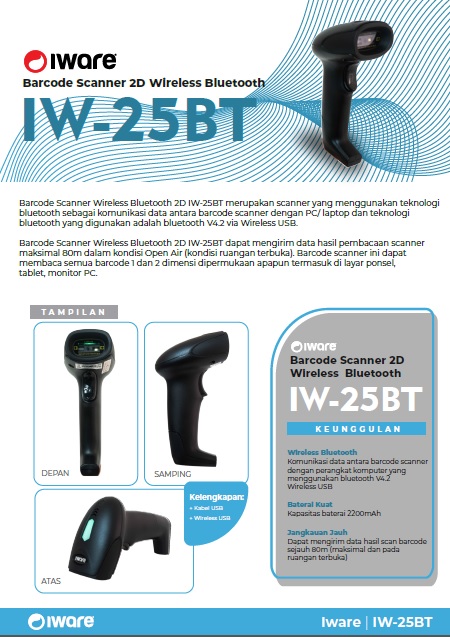 Barcode Scanner 2D Bluetooth IW-25BT