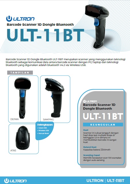 Barcode Scanner 1D Bluetooth ULT-11BT